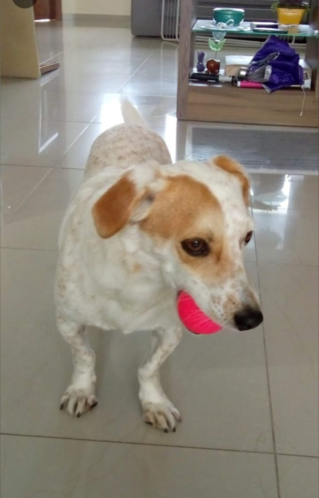 Loli com sua bolinha, um dos brinquedos favoritos para se divertir e se manter ativa
