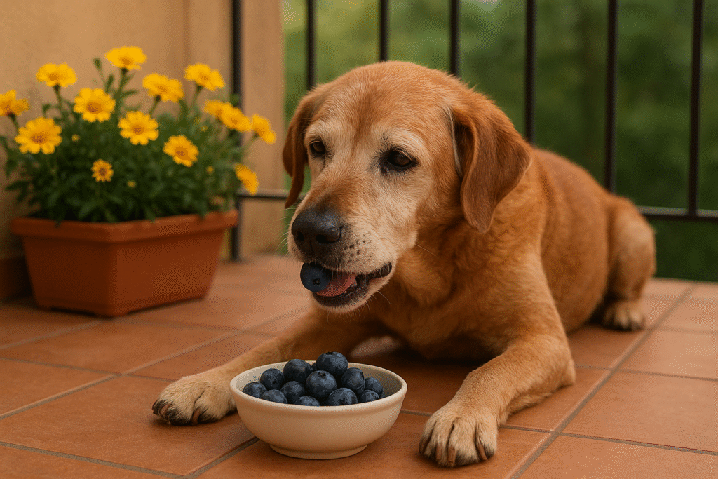 Mirtilo é um dos alimentos naturais para cães idosos mais ricos em antioxidantes, ajudando na cognição, imunidade e envelhecimento saudável.
