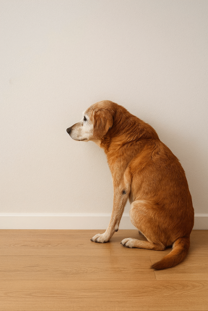 - Desorientação — o cão parece perdido em locais familiares, fica olhando fixamente para paredes ou cantos.