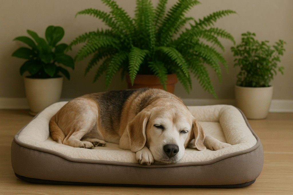 Cão sênior descansando após suplementação