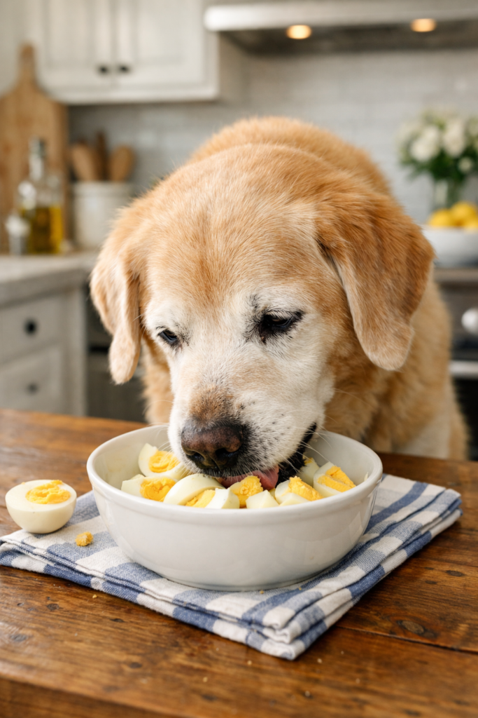 Ao observar quais alimentos naturais ajudam o cão idoso, os ovos cozidos podem ser uma alternativa simples e nutritiva quando há boa tolerância