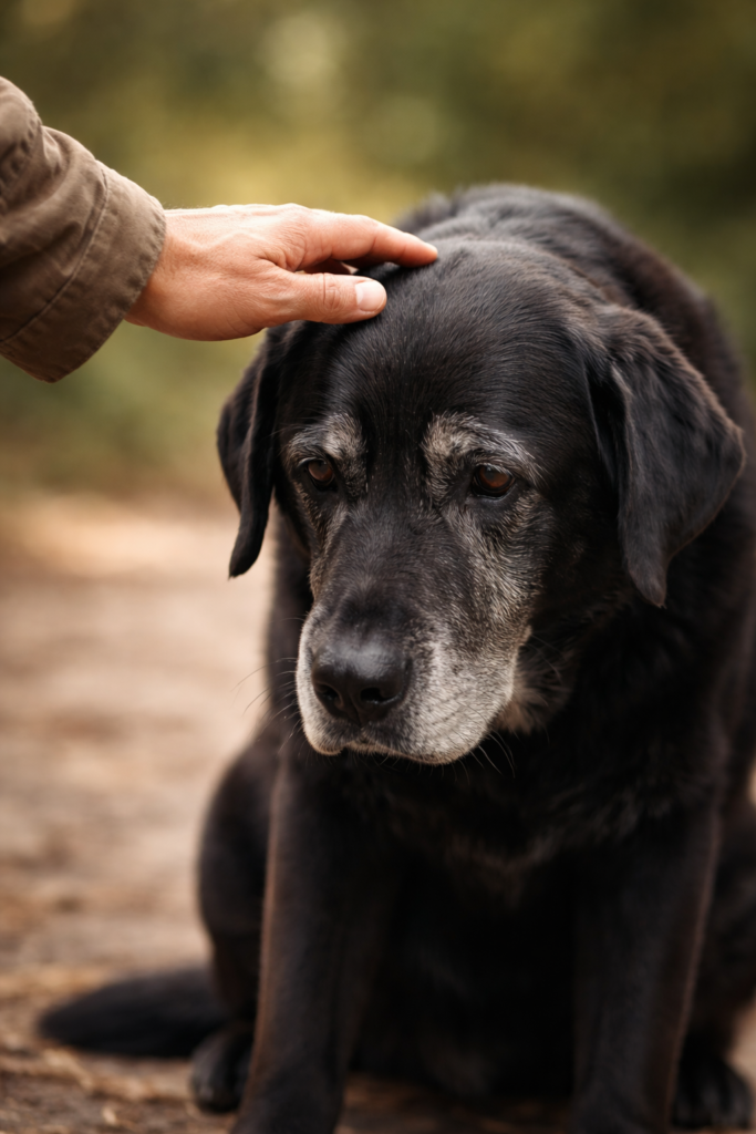 Quando o cão idoso começa a recusar carinho, o toque pode estar revelando mais do que comportamento
