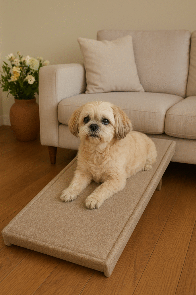 Além disso, rampas bem posicionadas diminuem o estresse físico e mental, permitindo que o cão mantenha uma rotina mais tranquila e ativa, sem depender tanto do tutor para subir ou descer.