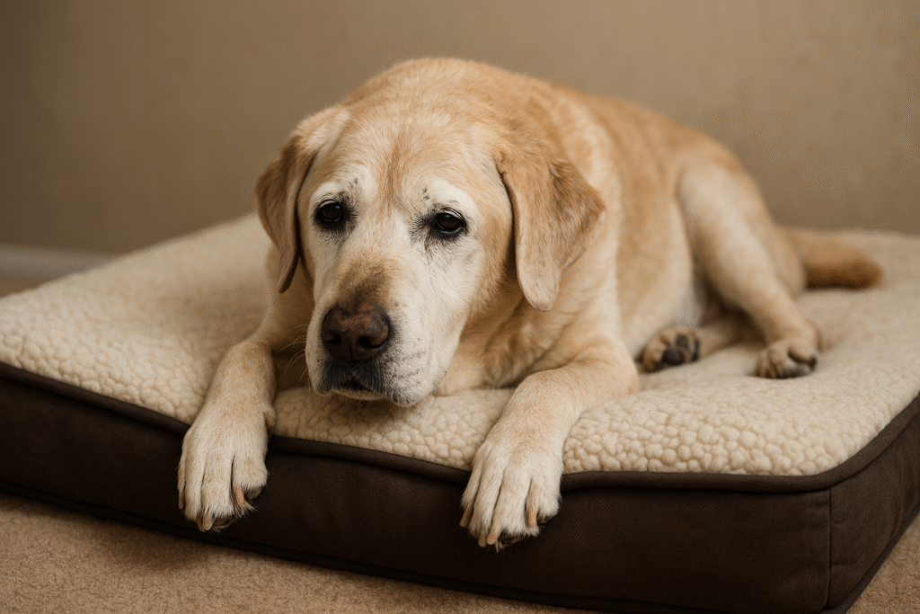 Cão sênior repousando- a pausa que reflete os sinais de envelhecimento