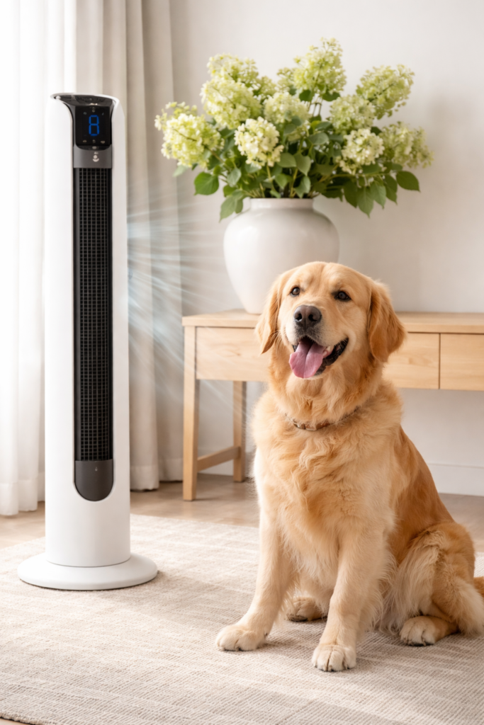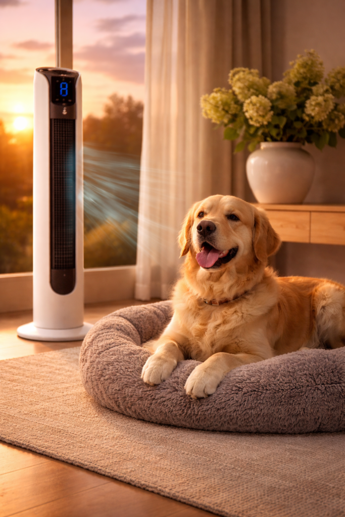 Quando o ar fica parado dentro de casa, o calor se concentra e o cachorro passa a trocar de lugar com frequência, tentando encontrar uma posição mais confortável. Nessa situação, melhorar a circulação de ar é essencial. Nesse contexto, ventiladores de torre silenciosos ajudam a movimentar o ar do ambiente de forma contínua, sem vento direto no animal: https://amzn.to/4aLKjYi , reduzindo o abafamento sem direcionar vento direto ao corpo do animal.